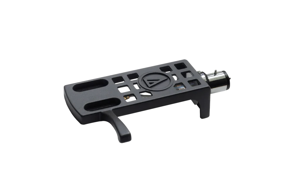 The lightweight aluminum Audio Technica AT-HS10BK is a universal ½”-mount headshell for 4-pin turntable cartridges. Featuring an aluminum die-cast body, the AT-HS10 is designed to keep vibration to the bare minimum. The finger lift is positioned near the front of headshell to enable precise placement of the stylus onto the record. The headshell is equipped with gold-plated lead wires for lossless signal transmission and comes with mounting screws.