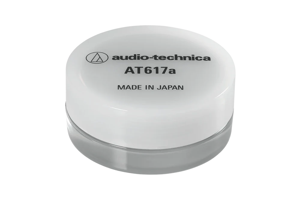 The Audio Technica AT617a cartridge stylus cleaner is a specially formulated polyurethane gel that gently removes dirt particles from the stylus tip when the stylus is lowered onto it. The gel’s surface is washable and will remain tacky for years.
