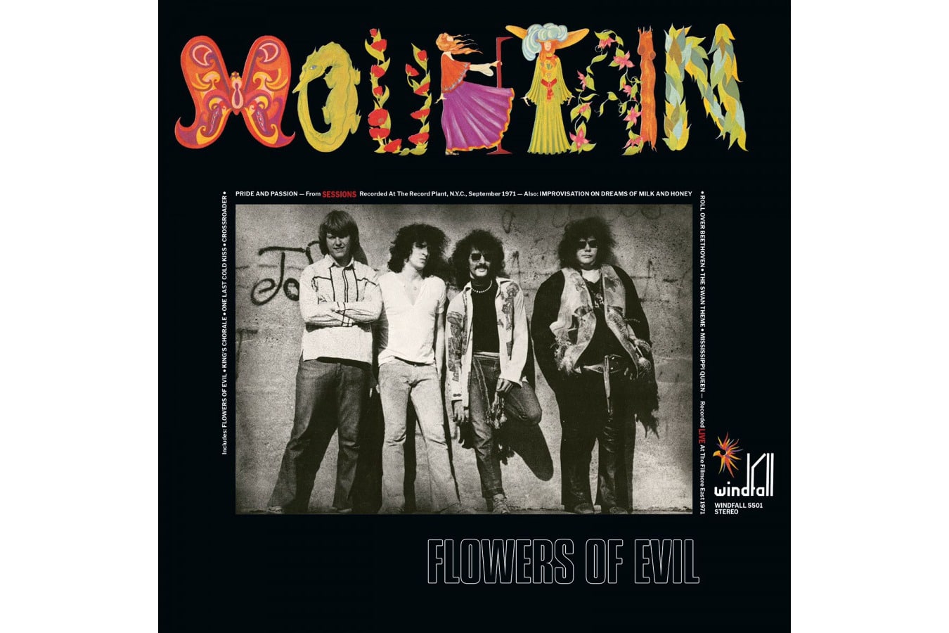 Flowers of Evil is the third album by American hard rock band Mountain, released In 1971The first part was recorded in the studio and the second during their Fillmore East concert. Both recordings are great and the live recording includes their famous cowbell-tinged song “Mississippi Queen”. The two sides are impressive in their own way.